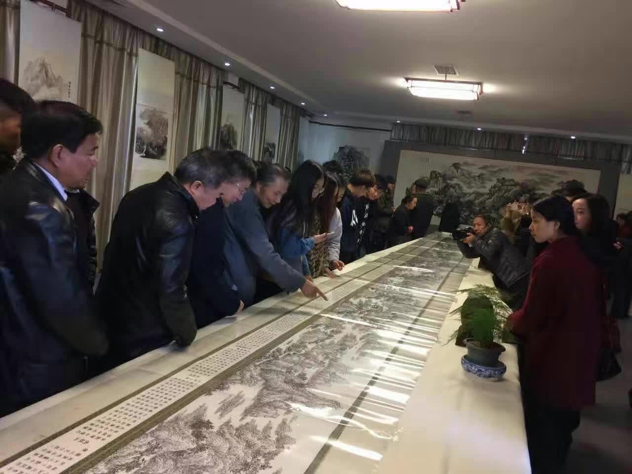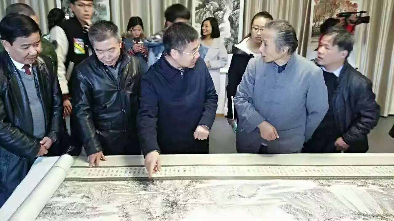 创作出一批反映大别山地区自然景观、人文风貌的作品。画展现场展出了杨明创作的50余幅大别山作品,其中一幅《锦绣大别山图卷》长达17.77米,创作历时三年。