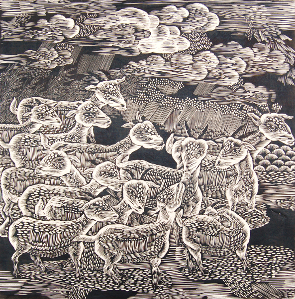 版画作品《吉祥的羊》参加文化部今日丝绸之路国际美术邀请展