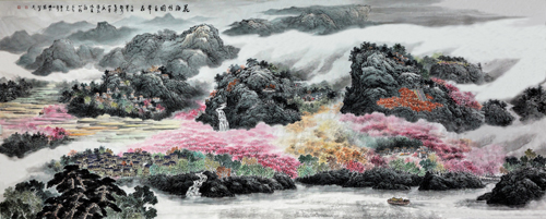 《花海情园春常在》中国画(170x420cm) 作者:杨明