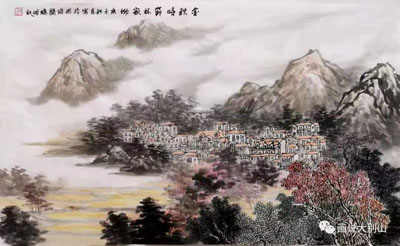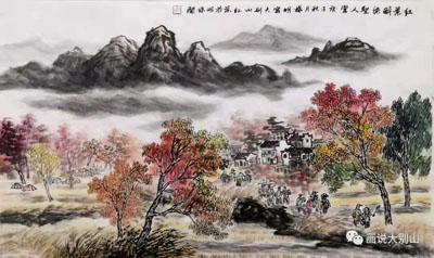 《金秋时节林家坳》 中国画 45x74cm