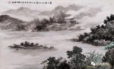 《青山碧水日月潭》 中国画 45x74cm
