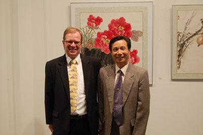 在展览会上与著名画家周韶华合影